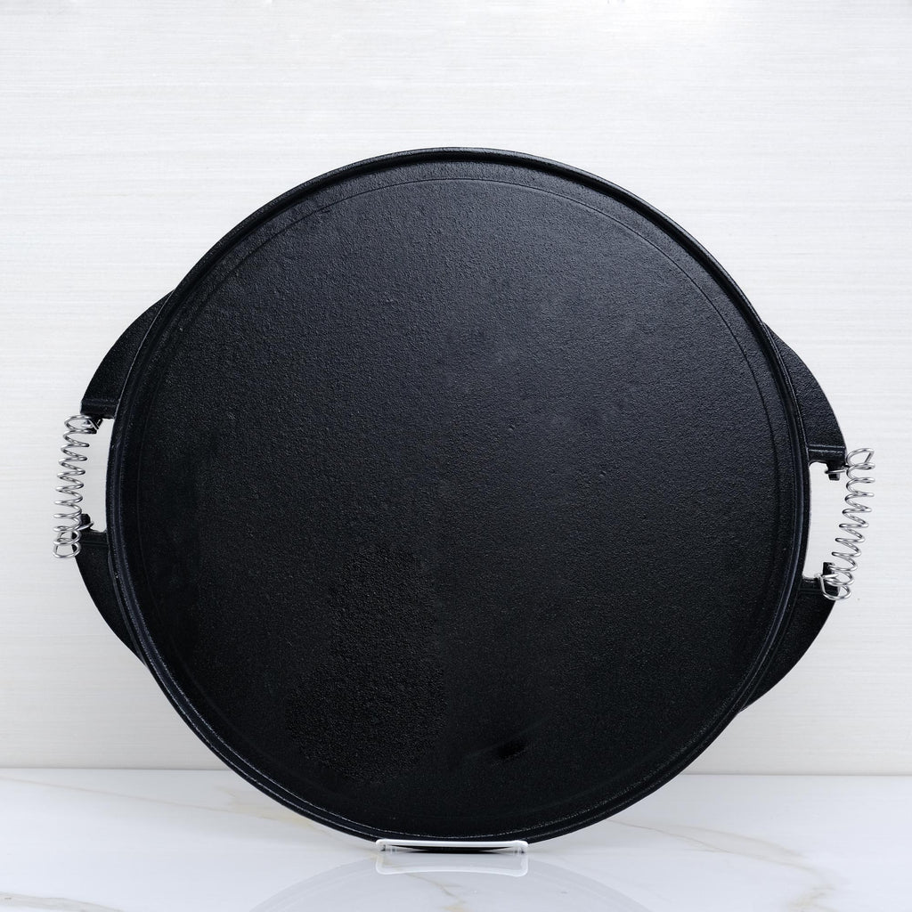 Cast iron griddle are ideal for outdoor use, over fire or charcoal. They can be used on both sides. The front is grooved and the back is smooth.