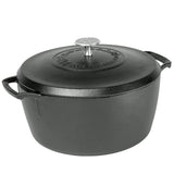 This Dutch oven is lightweight and made to slow-roast meats and simmer soups and stews. This cast iron is made for Foodies; Triple seasoned for a natural nonstick finish and cast in a thin, lightweight design; this will become your new go-to Dutch Oven. Additional features include elevated handles for added comfort and great control, generous cooking capacity, basting rings that recirculate moisture as food cooks, and a raised aluminum knob to provide an easy lift.